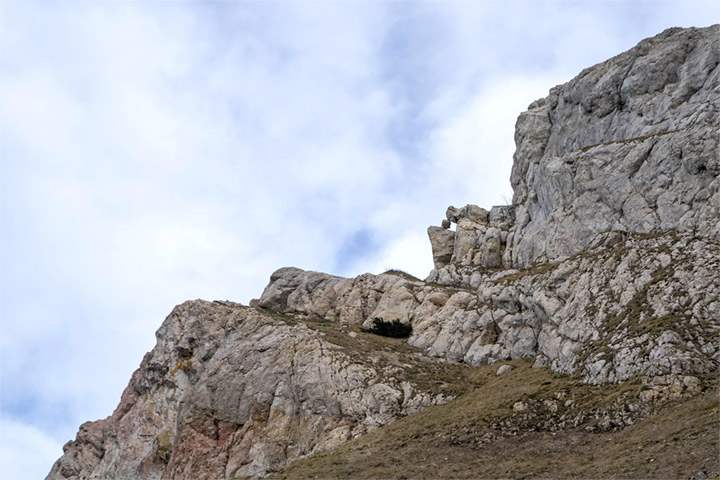 Один из фрагментов горной поверхности, стенами окружающей данный участок маршрута, напоминает два пальца, между которыми зажат маленький кубик. Будто спрятанный в скале каменный гигант показывает прохожим лишь ладонь — чтобы бросить игральную кость. Кое-где куски скал напоминают входы в «подземелья гномов».